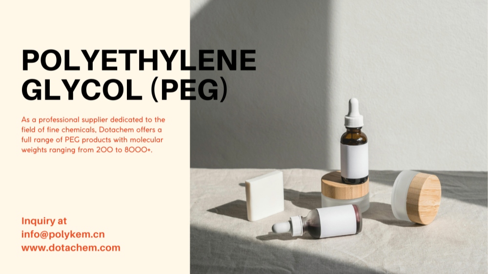 ในฐานะซัพพลายเออร์มืออาชีพที่ทุ่มเทให้กับสาขาสารเคมีชั้นดี Dotachem นำเสนอผลิตภัณฑ์ PEG ครบวงจรที่มีน้ำหนักโมเลกุลตั้งแต่ 200 ถึง 8000+